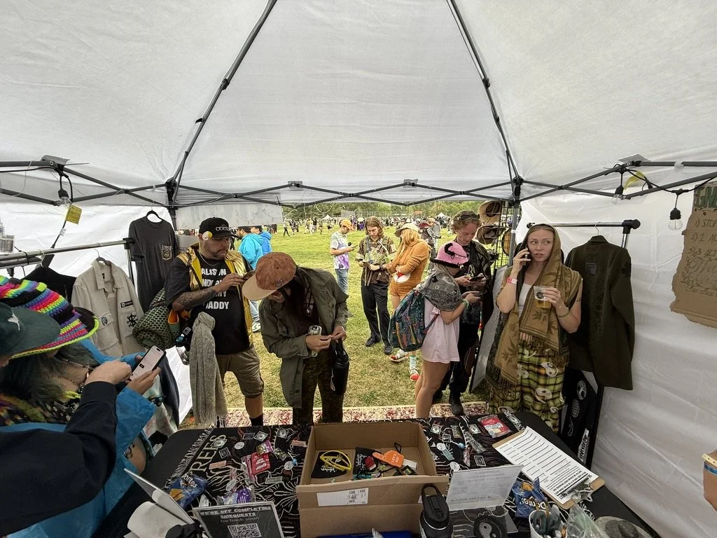 To be able to connect deeply with everyone who joined the workshop (despite rain and delays), stopped by the booth, or simply came by to vibe out in the mini (living room type beat) space I was able to curate, thank you. Seeing the OftheTrees community welcome this work, and even wearing my art throughout the weekend, was surreal and deeply affirming.